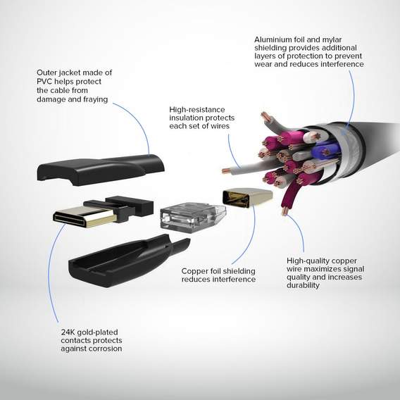 - Supports Ethernet, 3D, and Audio Return (no need for separate cables)